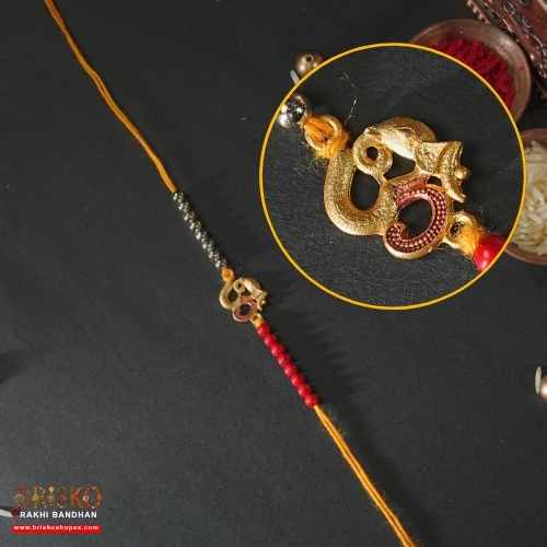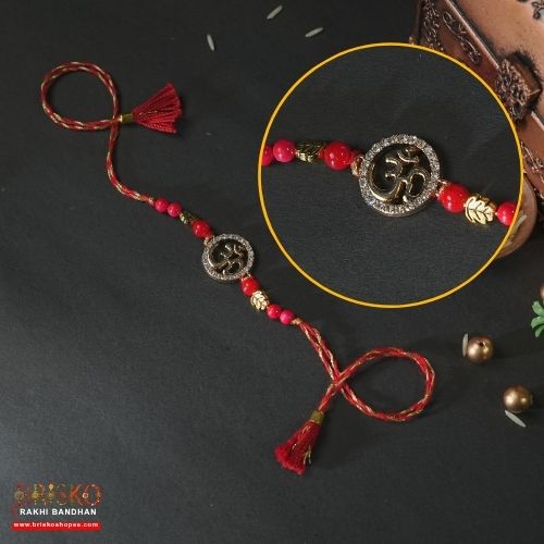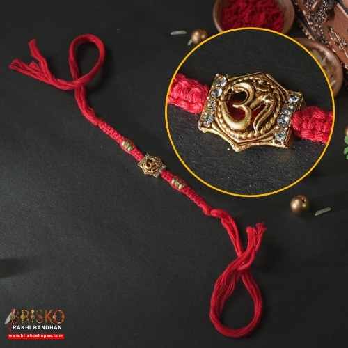 Om Symbol Rakhi on Red Thread – Spiritual Blessings for Brother
