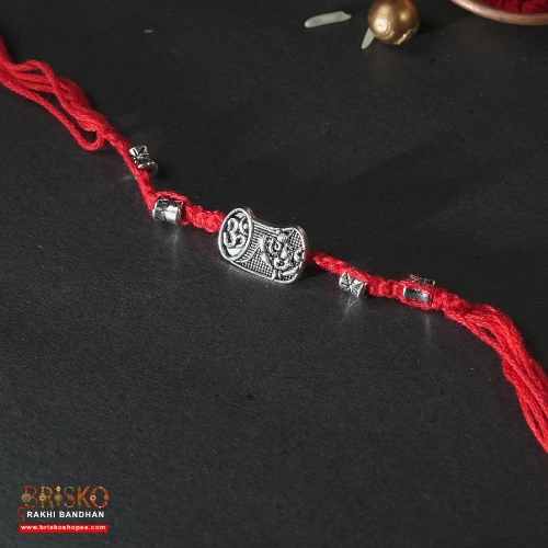 Oxidised Om Rakhi with Red Cotton Thread – Traditional Handmade Rakhi for Brother
