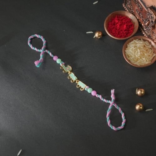 Train Rakhi for Kids – Soft Thread Handmade Rakhi with Pastel Beads and Toy Engine Charm