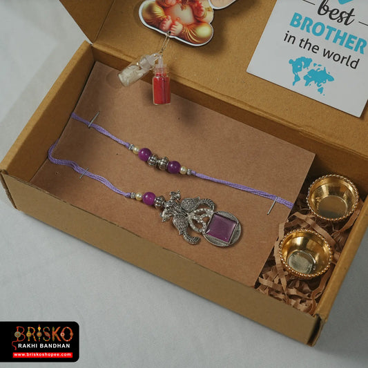 Box Rakhi Hamper – Elegant Pair Rakhi Set with Roli Chawal & Gifting Card