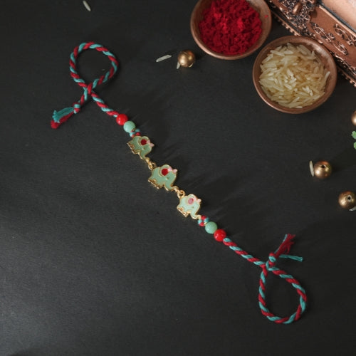 Elephant Rakhi for Kids – Colorful Thread Rakhi with Beaded Detailing and Completely Handmade
