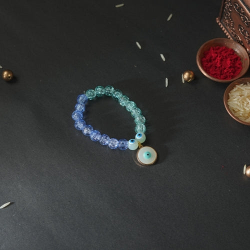 Evil Eye Bracelet Rakhi for Kids – Blue Beaded Design with Handmade Protective Charm