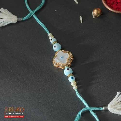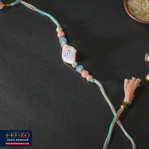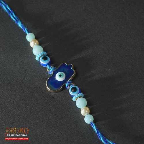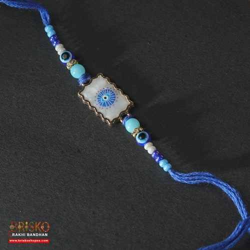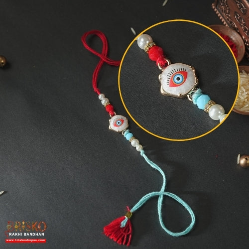 Evil Eye Protection Rakhi with Mint Blue Thread – Briskoshopee Rakhi for Brother