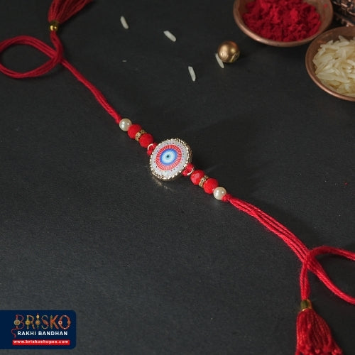 Red & Blue Evil Eye Handmade Rakhi – Stylish Protection for Brother